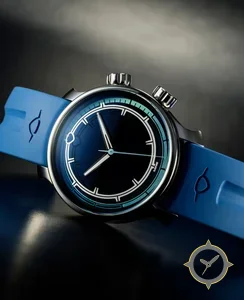 A Dive watch with a vintage-inspired 32.5mm case, crafted from stainless steel featuring a navy dial with a unique glossy lacquer finish.