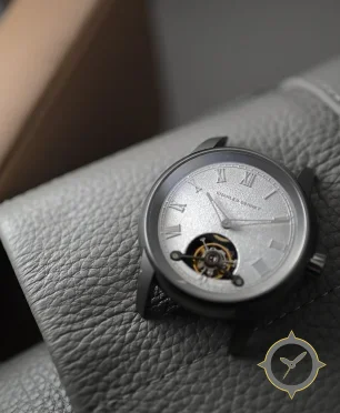 A Dress watch with a bold 42.5mm presence on the wrist, crafted from stainless steel featuring a silver dial with a unique frosted / grained finish.