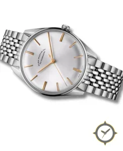 A Dress watch with a vintage-inspired 33mm case, crafted from stainless steel featuring a silver dial with a unique sunburst finish.