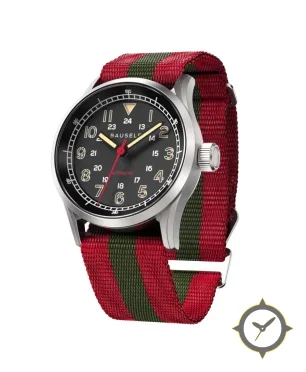 A Field watch with a vintage-inspired 35mm case, crafted from stainless steel featuring a black dial with a unique matte finish.