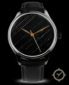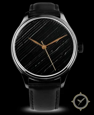 A Minimalist watch with a versatile 39.5mm case, that suits most wrists, crafted from stainless steel featuring a black dial with a unique diagonal ribbed texture finish.