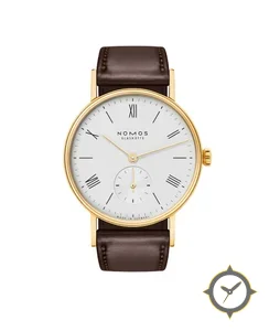 A Dress watch with a vintage-inspired 29.5mm case, crafted from gold featuring a white dial with a unique matte finish.