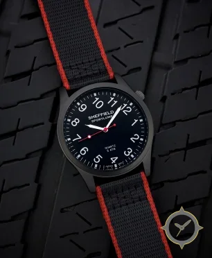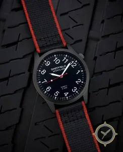 A Field watch with a bold 45mm presence on the wrist, crafted from stainless steel featuring a black dial with a unique matte finish.
