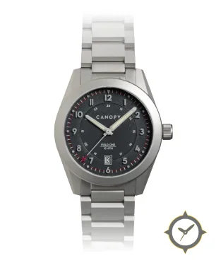 A Field watch with a bold 45.5mm presence on the wrist, crafted from stainless steel featuring a gray dial with a unique grained finish.