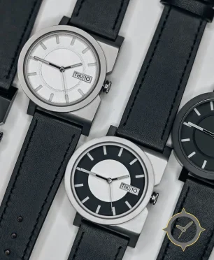 A Minimalist watch with a versatile 38.5mm case, that suits most wrists, crafted from stainless steel featuring a black dial with a unique matte/grain finish.