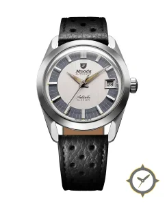 A Vintage watch with a bold 42mm presence on the wrist, crafted from stainless steel featuring a silver dial with a unique vertical brushed (sunray) centre with matte outer sector finish.