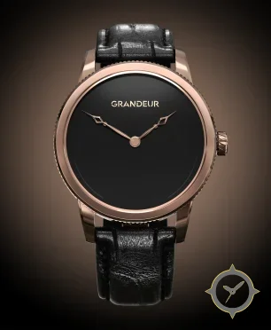 A Dress watch, crafted from gold featuring a black dial with a unique glossy lacquer finish.