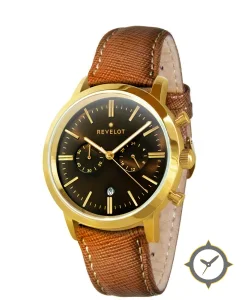 A Chronograph watch with a bold 50.5mm presence on the wrist, crafted from gold featuring a brown dial with a unique sunburst finish.