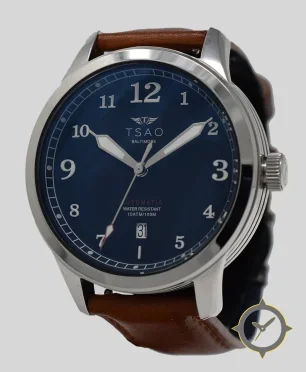 A Pilot watch with a versatile 39.5mm case, that suits most wrists, crafted from stainless steel featuring a blue dial with a unique sunburst finish.
