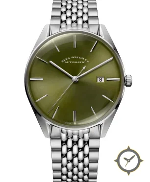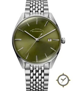 A Dress watch with a versatile 40.5mm case, that suits most wrists, crafted from stainless steel featuring a green dial with a unique sunburst finish.