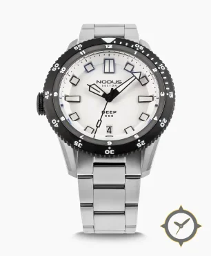 A Dive watch with a bold 44.5mm presence on the wrist, crafted from stainless steel featuring a white dial with a unique matte finish.