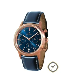 A Chronograph watch with a bold 45mm presence on the wrist, crafted from gold featuring a blue dial with a unique sunburst finish.