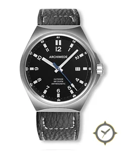 A Field watch with a bold 47.5mm presence on the wrist, crafted from stainless steel featuring a black dial with a unique matte finish.