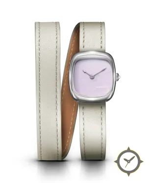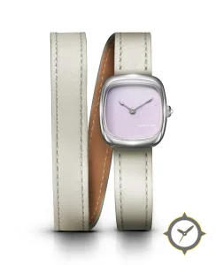 A Dress watch with a vintage-inspired 35.5mm case, crafted from stainless steel featuring a purple dial with a unique soft grained / leather-like texture finish.