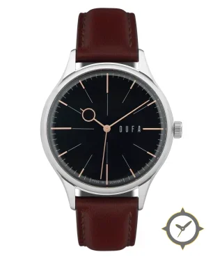 A Minimalist watch with a versatile 40mm case, that suits most wrists, crafted from stainless steel featuring a black dial with a unique lacquer finish.