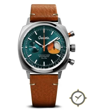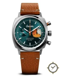 A Chronograph watch with a bold 42mm presence on the wrist, crafted from stainless steel featuring a green dial with a unique sunburst finish.