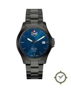 A Military watch with a versatile 40mm case, that suits most wrists, crafted from stainless steel featuring a blue dial with a unique sunburst finish.