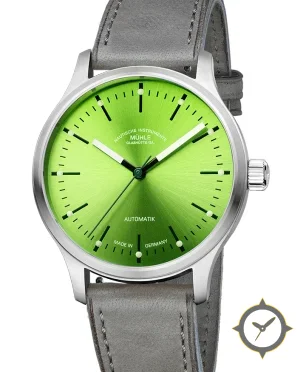 A Minimalist watch with a versatile 39.5mm case, that suits most wrists, crafted from stainless steel featuring a green dial with a unique sunburst finish.
