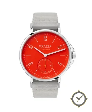 A Minimalist watch with a vintage-inspired 33mm case, crafted from stainless steel featuring a red dial with a unique matte finish.