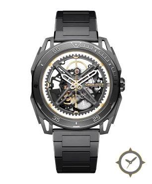 A Skeleton watch, crafted from titanium featuring a black dial with a unique openworked/skeleton finish.