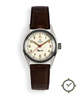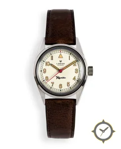 A Field watch with a vintage-inspired 37.5mm case, crafted from stainless steel featuring a white dial with a unique matte finish.