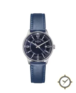A Sports watch with a vintage-inspired 30mm case, crafted from stainless steel featuring a blue dial with a unique sunburst finish.