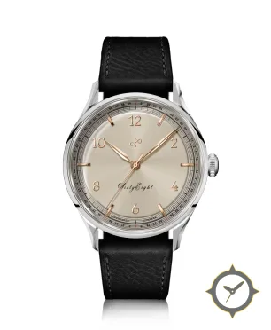 A Dress watch with a vintage-inspired 32.5mm case, crafted from stainless steel featuring a silver dial with a unique sunburst finish.