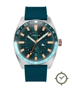 A GMT watch with a versatile 38.5mm case, that suits most wrists, crafted from stainless steel featuring a turquoise dial with a unique sunburst finish and a true GMT complication for tracking a second time zone.