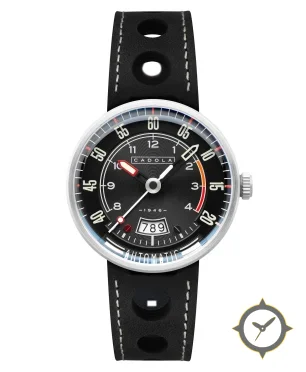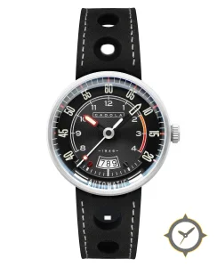 A Racing watch with a bold 46.5mm presence on the wrist, crafted from stainless steel featuring a black dial with a unique concentric grooves / sunburst finish.