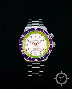 A Dive watch with a vintage-inspired 36.5mm case, crafted from stainless steel featuring a white dial with a unique wavy (textured) finish.