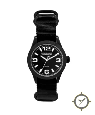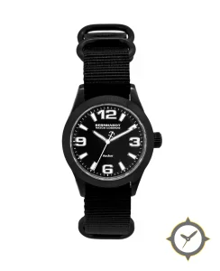 A Field watch with a bold 44mm presence on the wrist, crafted from Coating featuring a black dial with a unique matte finish.