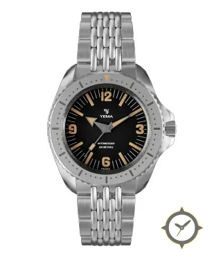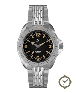 A GMT watch with a vintage-inspired 23mm case, crafted from stainless steel featuring a black dial with a unique matte finish and a true GMT complication for tracking a second time zone.
