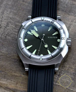 A Dive watch with a bold 44.5mm presence on the wrist, crafted from stainless steel featuring a green dial with a unique matte finish.