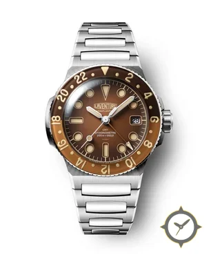 A GMT watch with a versatile 39.5mm case, that suits most wrists, crafted from stainless steel featuring a brown dial with a unique sunburst finish and a true GMT complication for tracking a second time zone.