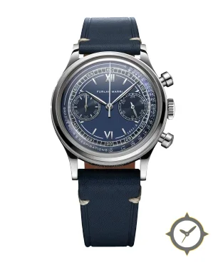 A Chronograph watch with a bold 42.5mm presence on the wrist, crafted from stainless steel featuring a navy dial with a unique sunburst / radial brushed finish.