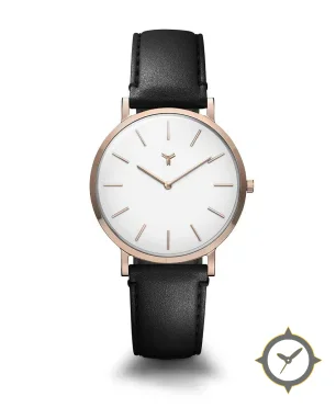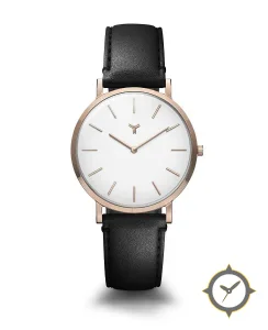 A Minimalist watch with a vintage-inspired 31mm case, crafted from gold featuring a white dial with a unique smooth finish.