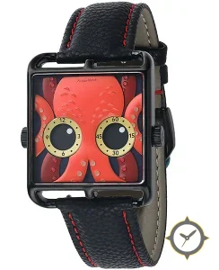 A Nautical watch, crafted from stainless steel featuring a red dial with a unique printed illustrated/cartoon texture (matte) finish.