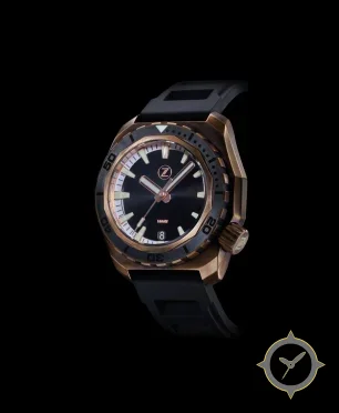 A Dive watch with a versatile 40mm case, that suits most wrists, crafted from bronze featuring a black dial with a unique sunburst finish.