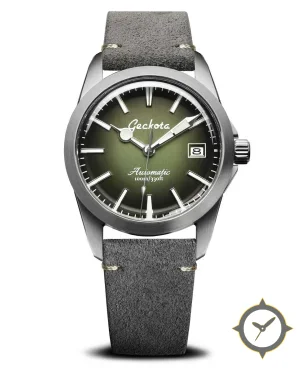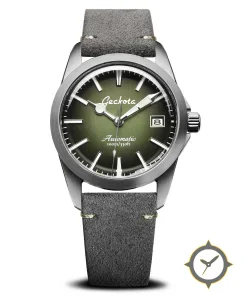 A Field watch with a vintage-inspired 36.5mm case, crafted from stainless steel featuring a green dial with a unique sunburst finish.
