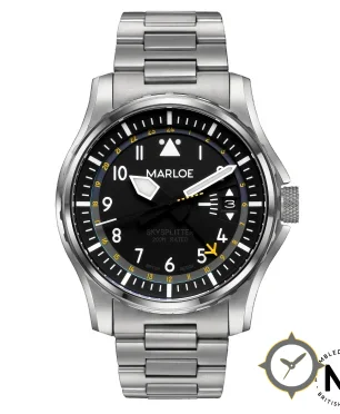 A Aviation watch with a bold 42mm presence on the wrist, crafted from stainless steel featuring a black dial with a unique matte finish and a true GMT complication for tracking a second time zone.