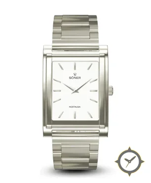 A Dress watch with a vintage-inspired 30mm case, crafted from stainless steel featuring a white dial with a unique matte finish.