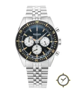 A Chronograph watch with a versatile 40mm case, that suits most wrists, crafted from stainless steel featuring a black dial with a unique matte finish.