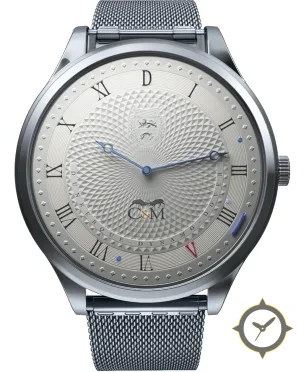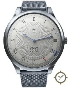 A Dress watch with a bold 41.5mm presence on the wrist, crafted from stainless steel featuring a silver dial with a unique guilloche (engine-turned) finish.