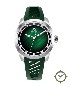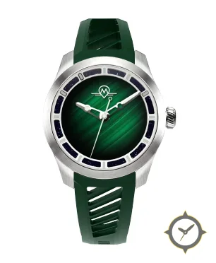 A Sports watch with a vintage-inspired 31.5mm case, crafted from stainless steel featuring a green dial with a unique diagonal sunburst / brushed gradient finish.