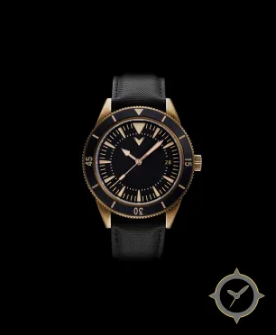 A Dive watch with a bold 43.5mm presence on the wrist, crafted from bronze featuring a black dial with a unique matte finish.