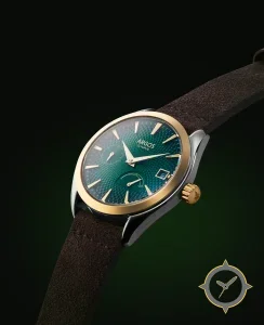 A Dress watch with a bold 43.5mm presence on the wrist, crafted from stainless steel featuring a green dial with a unique guilloche finish.