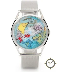 A Dress watch with a versatile 41mm case, that suits most wrists, crafted from stainless steel featuring a turquoise dial with a unique illustrated cartoon print with bubble motifs finish.