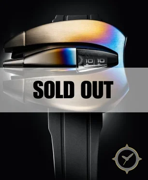 A Digital watch, crafted from titanium featuring a black dial with a unique glossy finish.