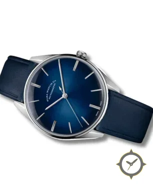 A Dress watch with a versatile 39.5mm case, that suits most wrists, crafted from stainless steel featuring a blue dial with a unique sunburst finish.