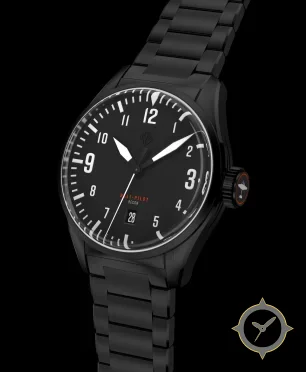A Pilot watch with a versatile 40mm case, that suits most wrists, crafted from stainless steel featuring a black dial with a unique matte finish.